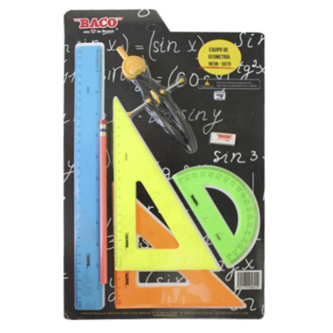 ESTUCHE DE GEOMETRIA BACO E-5050 NEON CON COMPAS C-600 cantidad