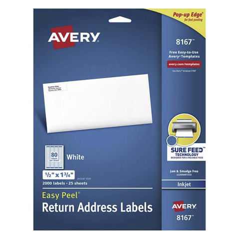 ETIQUETA INKJET AVERY 8167 PARA DIRECCIONES 1.3X4.5 CMS. PAQUETE CON 2000 cantidad