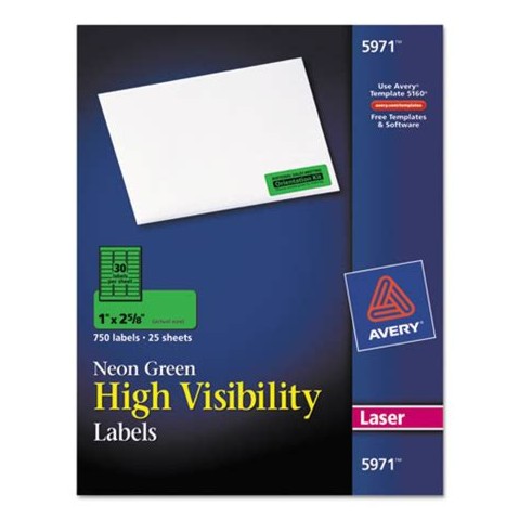 ETIQUETA LASER AVERY 5971 VERDE NEON 1X2 5/8 PULGADAS PAQUETE CON 750 cantidad