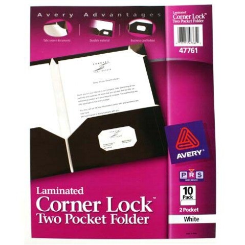 FOLDER LAMINADO BRILLANTE CON SOLAPA AVERY 47761 BLANCO PAQUETE CON 10 cantidad