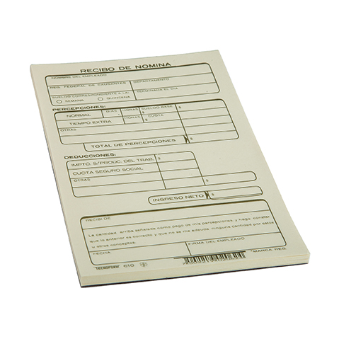FORMA TECNOFORM 610 RECIBO DE NOMINA 1/4 OFICIO BLOCK CON 25 JUEGOS