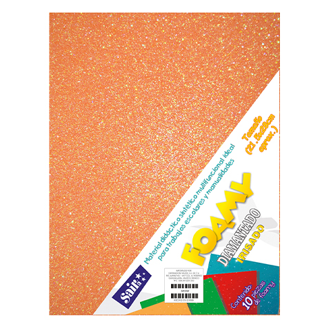 HOJA FOMI SAIRA DIAMANTADO TAMAÑO CARTA 478038 NARANJA IRISADO #38 PAQUETE CON 10 PIEZAS cantidad