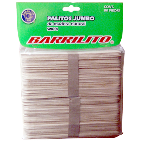 PALITOS PLANOS JUMBO BARRILITO W-004 MADERA NATURAL BOLSA CON 80 cantidad
