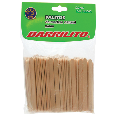 PALITOS PLANOS BARRILITO W-001 MADERA NATURAL BOLSA CON 150
