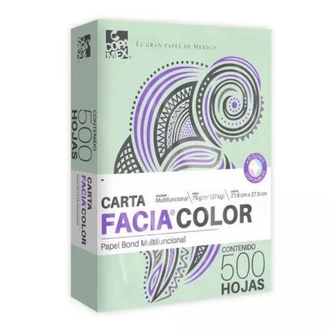 PAPEL BOND COPAMEX FACIA COLORES CARTA 37 KGS. VERDE PAQUETE CON 500 cantidad
